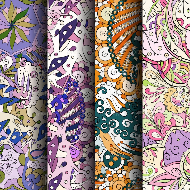 Набор ажурных красочных бесшовных узоров