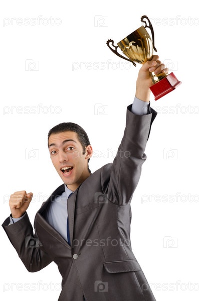 Успешный бизнесмен с золотым кубком
