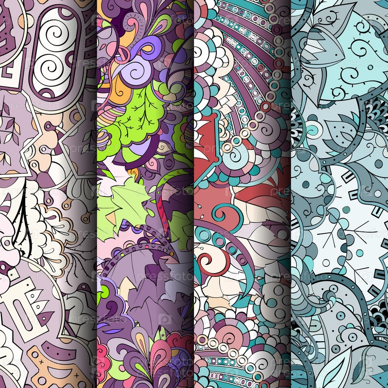 Набор ажурных красочных бесшовных узоров
