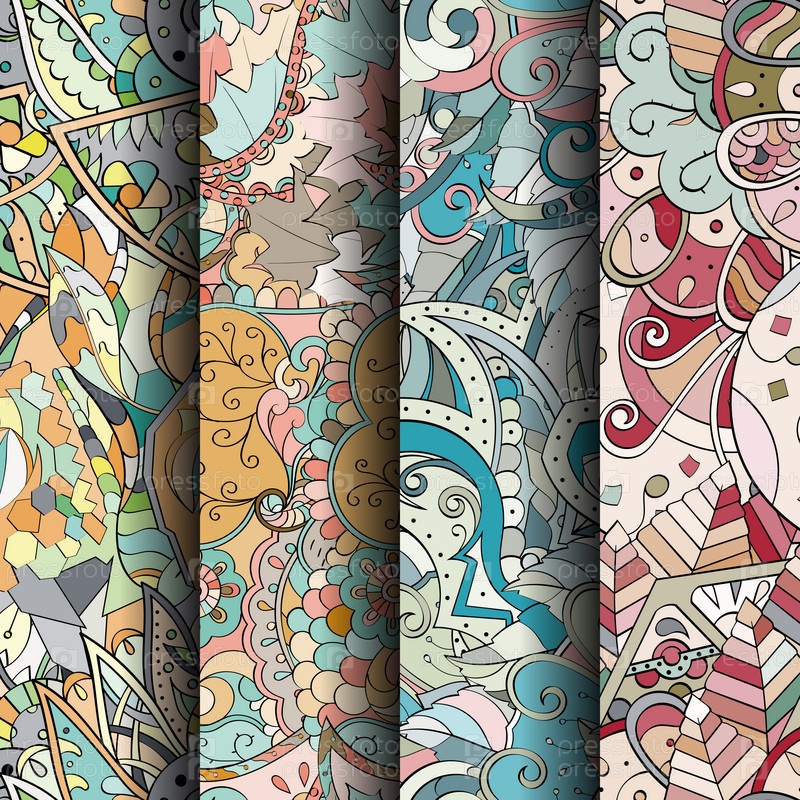 Набор ажурных красочных бесшовных узоров