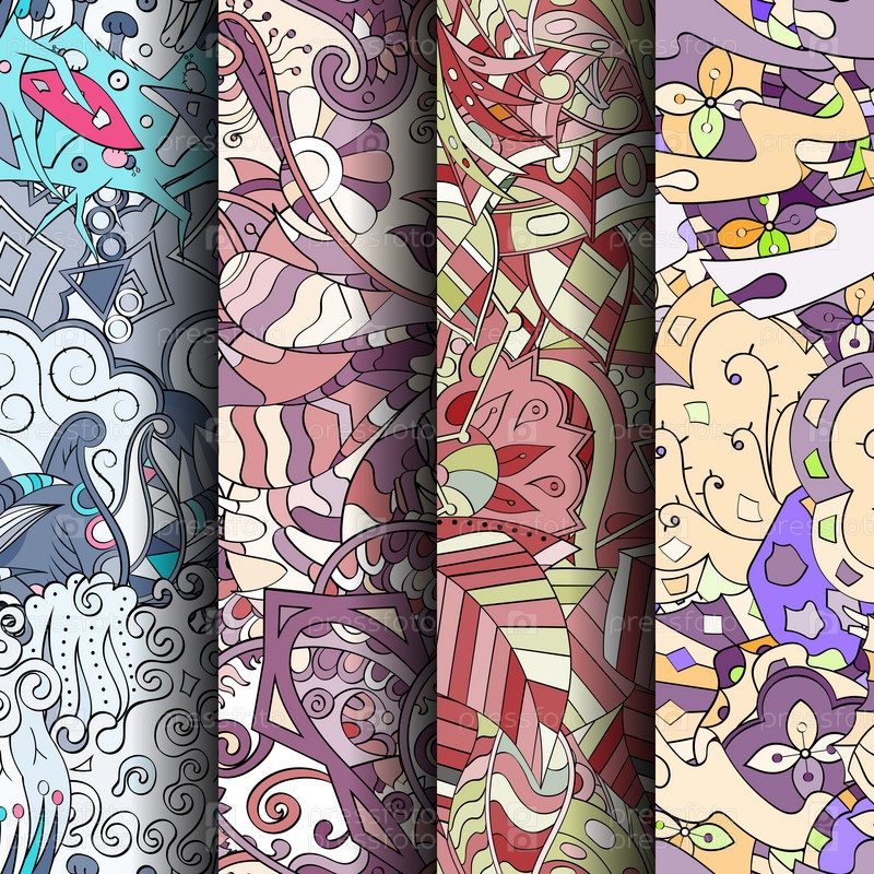 Набор ажурных красочных бесшовных узоров