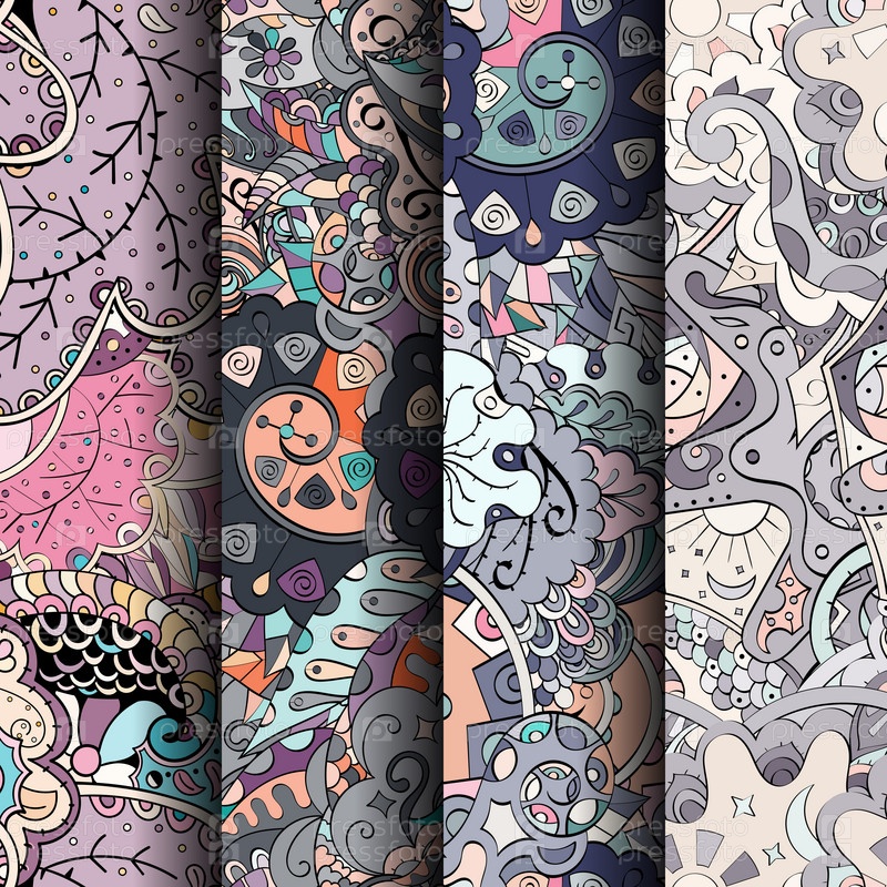 Набор ажурных красочных бесшовных узоров