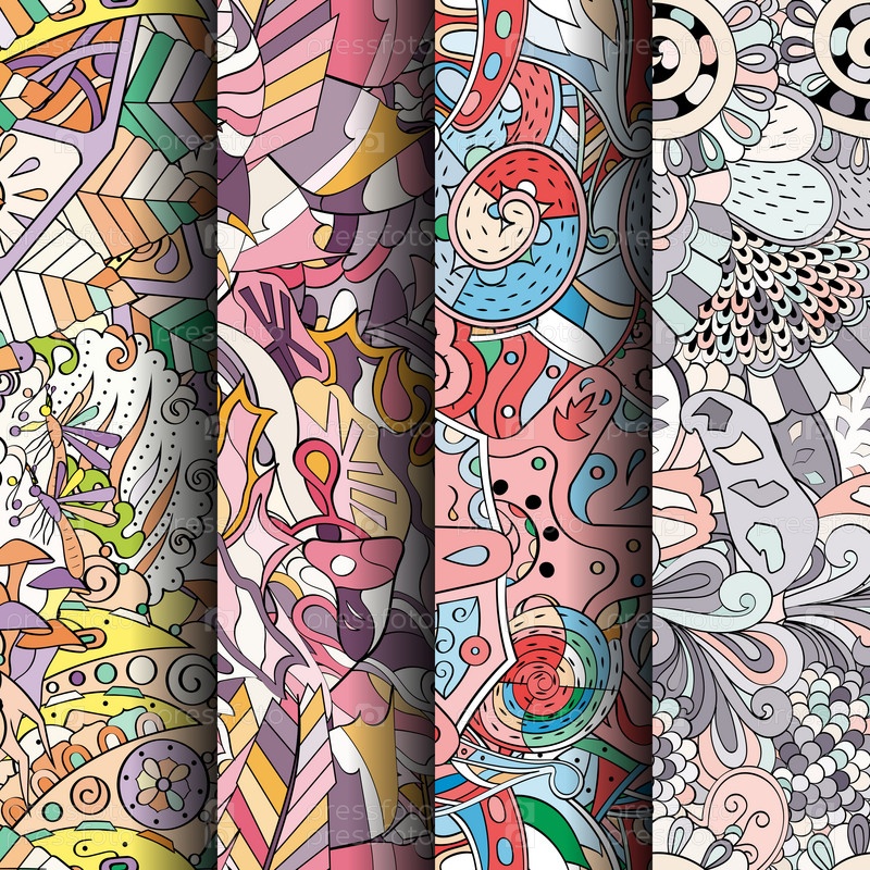 Набор ажурных красочных бесшовных узоров
