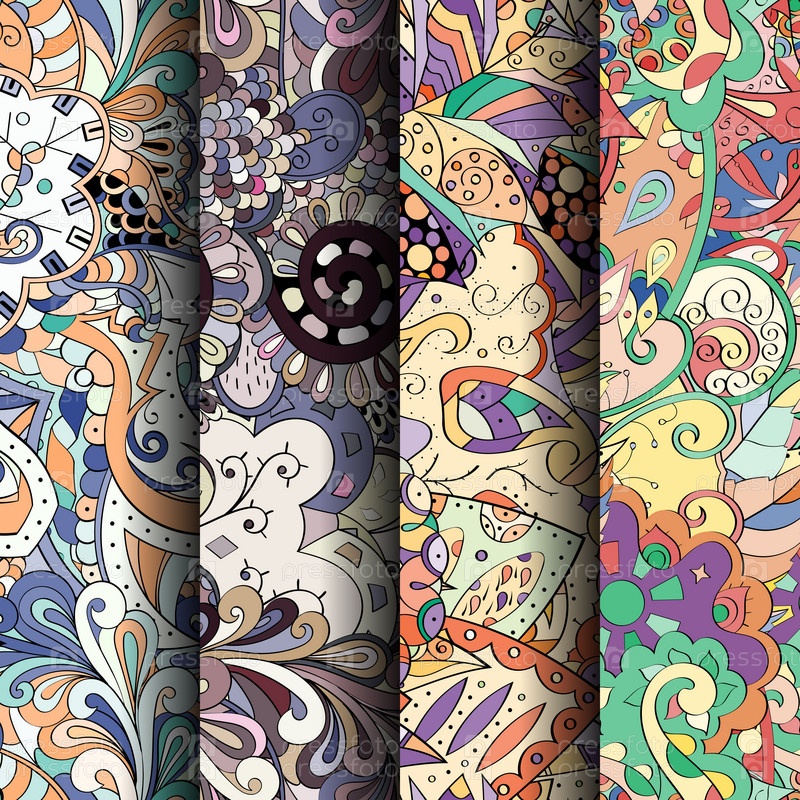 Набор ажурных красочных бесшовных узоров