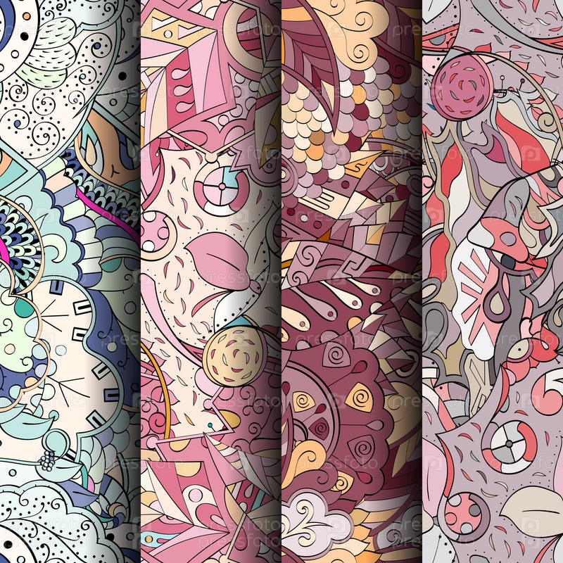 Набор ажурных красочных бесшовных узоров