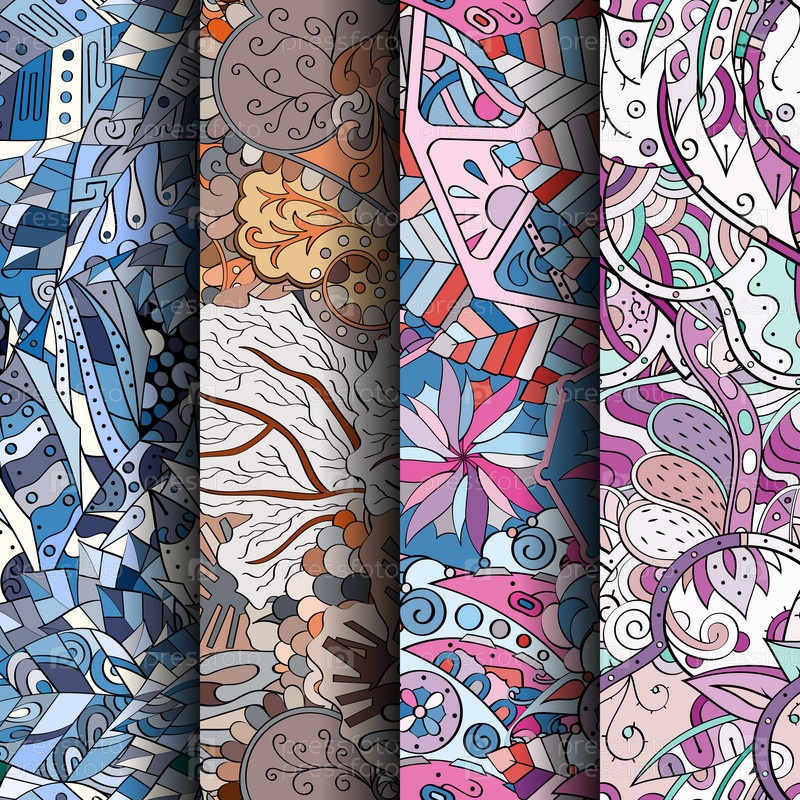 Набор ажурных красочных бесшовных узоров