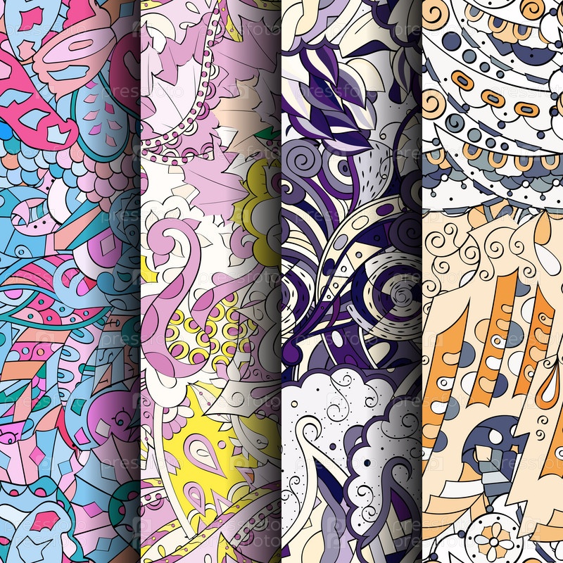 Набор ажурных красочных бесшовных узоров