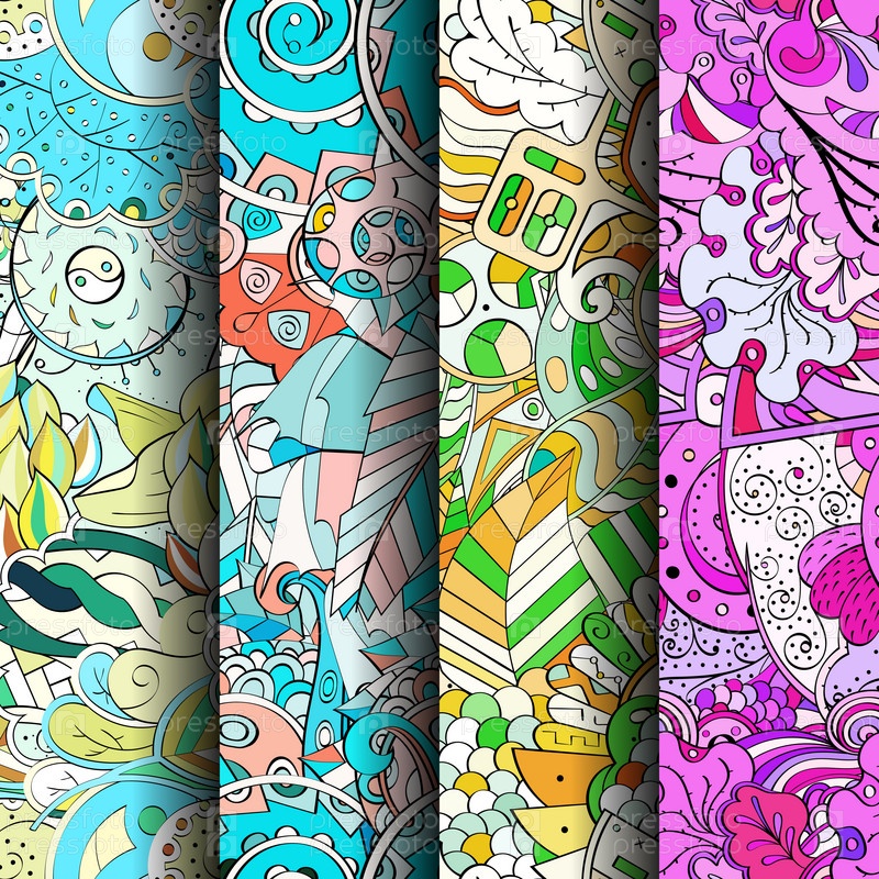 Набор ажурных красочных бесшовных узоров