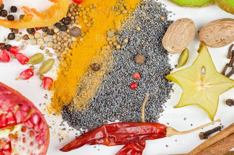 Специи на белом фоне