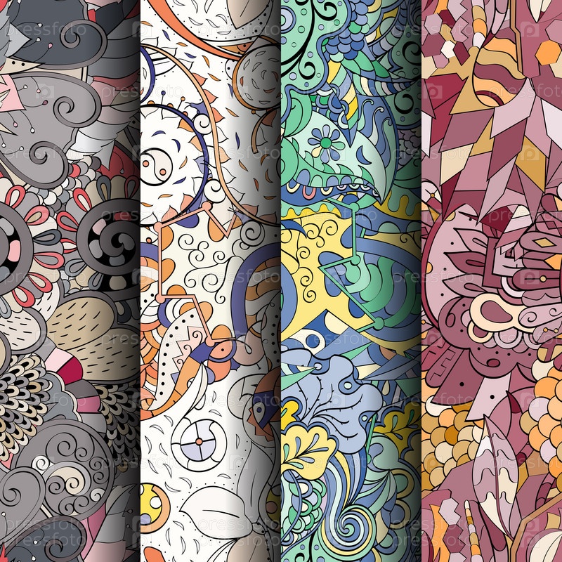 Набор ажурных красочных бесшовных узоров