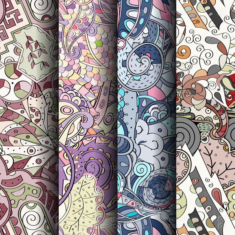 Набор ажурных красочных бесшовных узоров