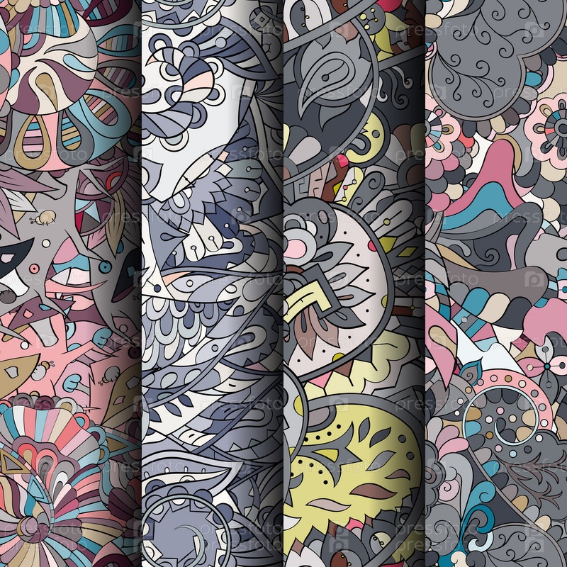 Набор ажурных красочных бесшовных узоров