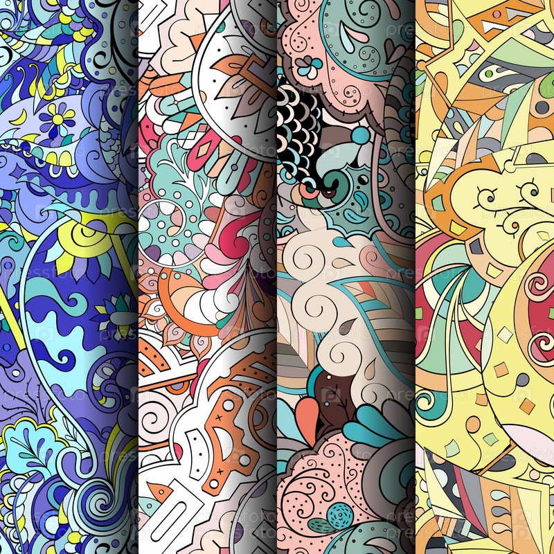 Набор ажурных красочных бесшовных узоров