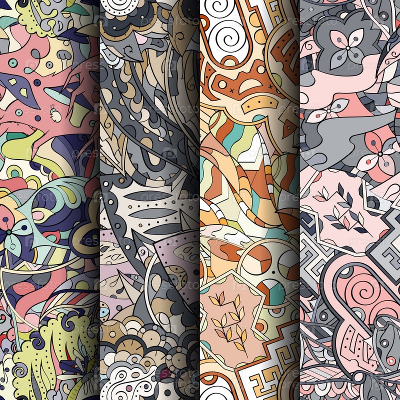 Набор ажурных красочных бесшовных узоров