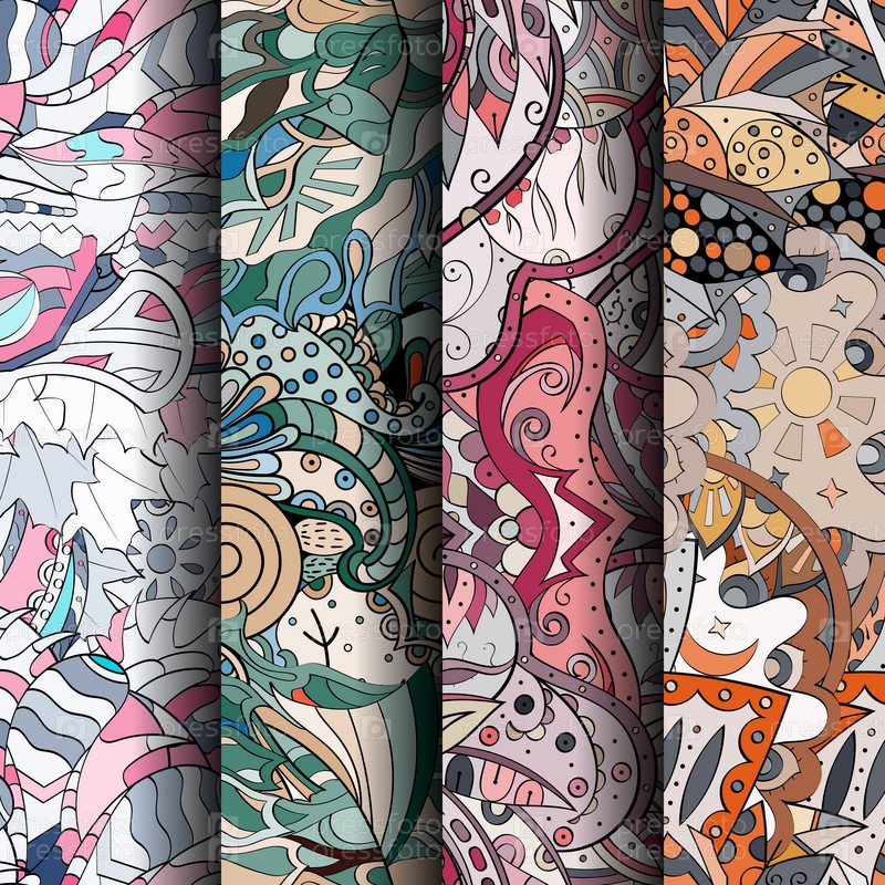 Набор ажурных красочных бесшовных узоров
