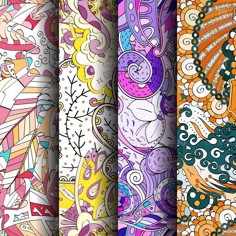 Набор ажурных красочных бесшовных узоров