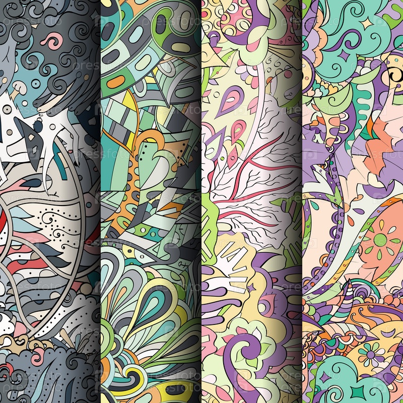Набор ажурных красочных бесшовных узоров