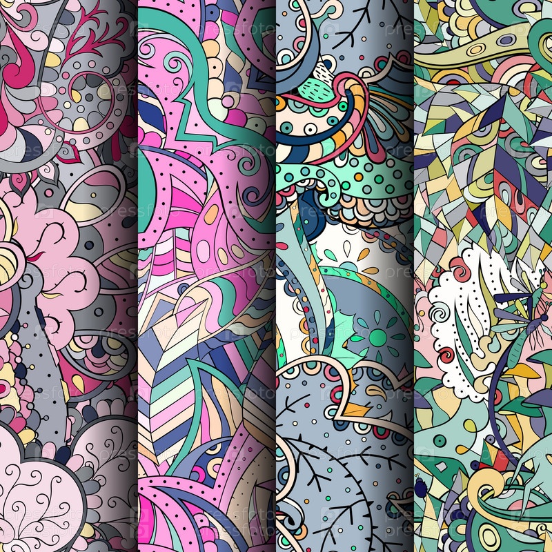 Набор ажурных красочных бесшовных узоров