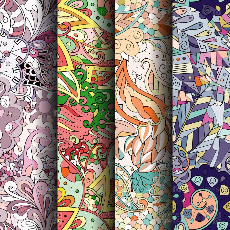 Набор ажурных красочных бесшовных узоров
