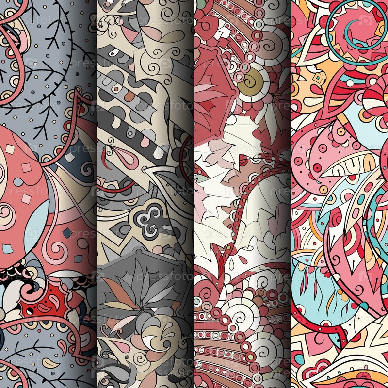 Набор ажурных красочных бесшовных узоров