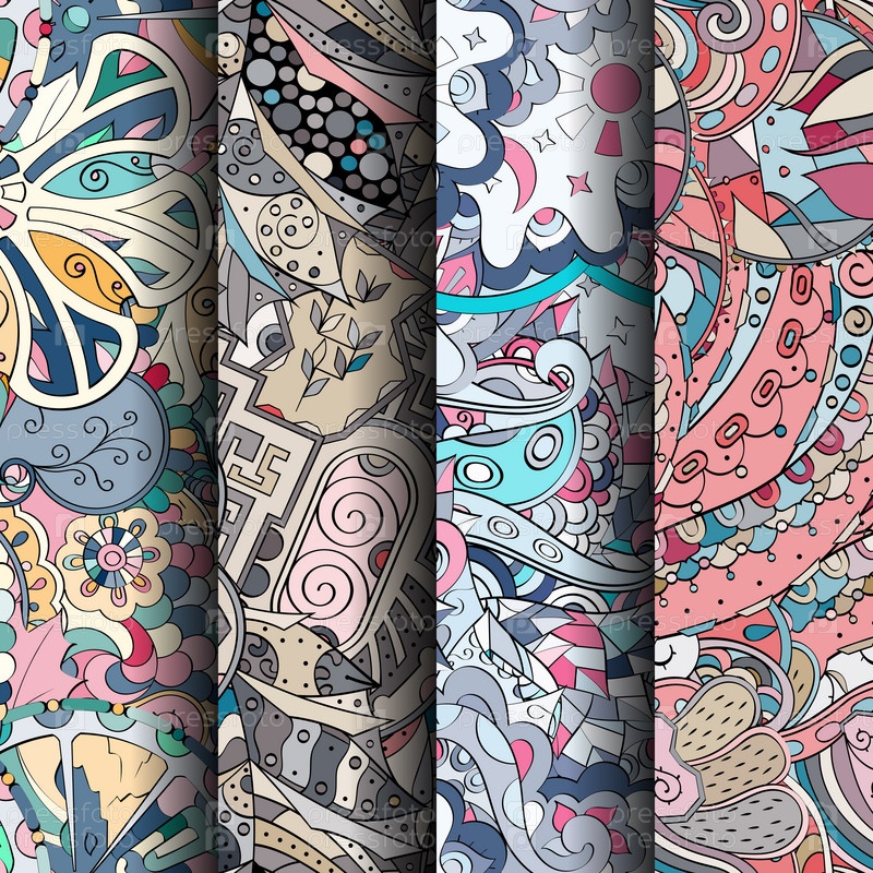 Набор ажурных красочных бесшовных узоров