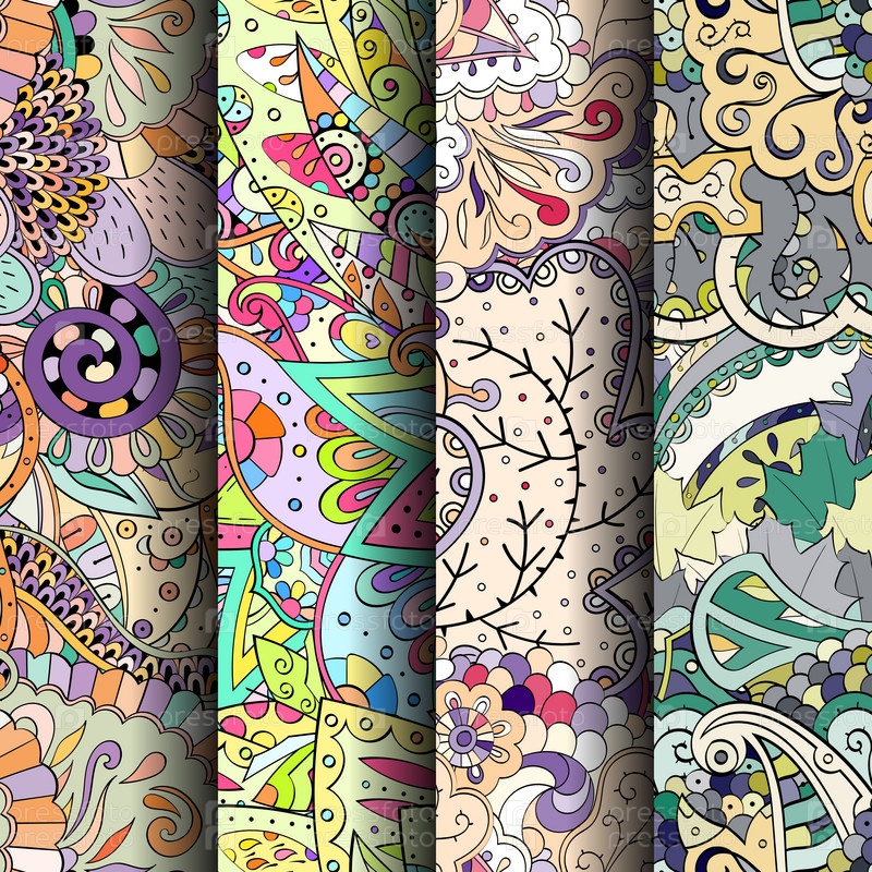 Набор ажурных красочных бесшовных узоров