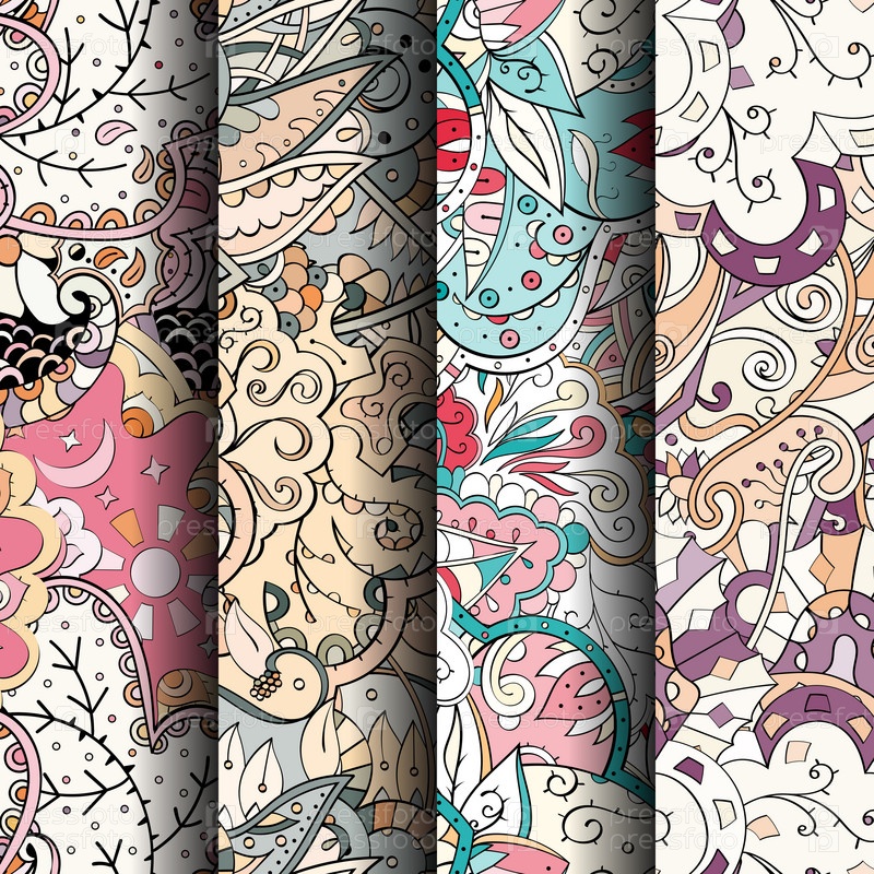 Набор ажурных красочных бесшовных узоров