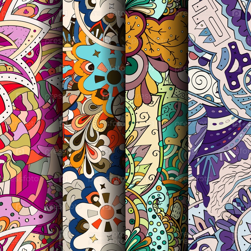 Набор ажурных красочных бесшовных узоров