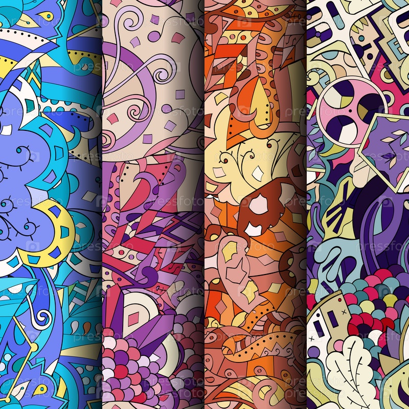 Набор ажурных красочных бесшовных узоров