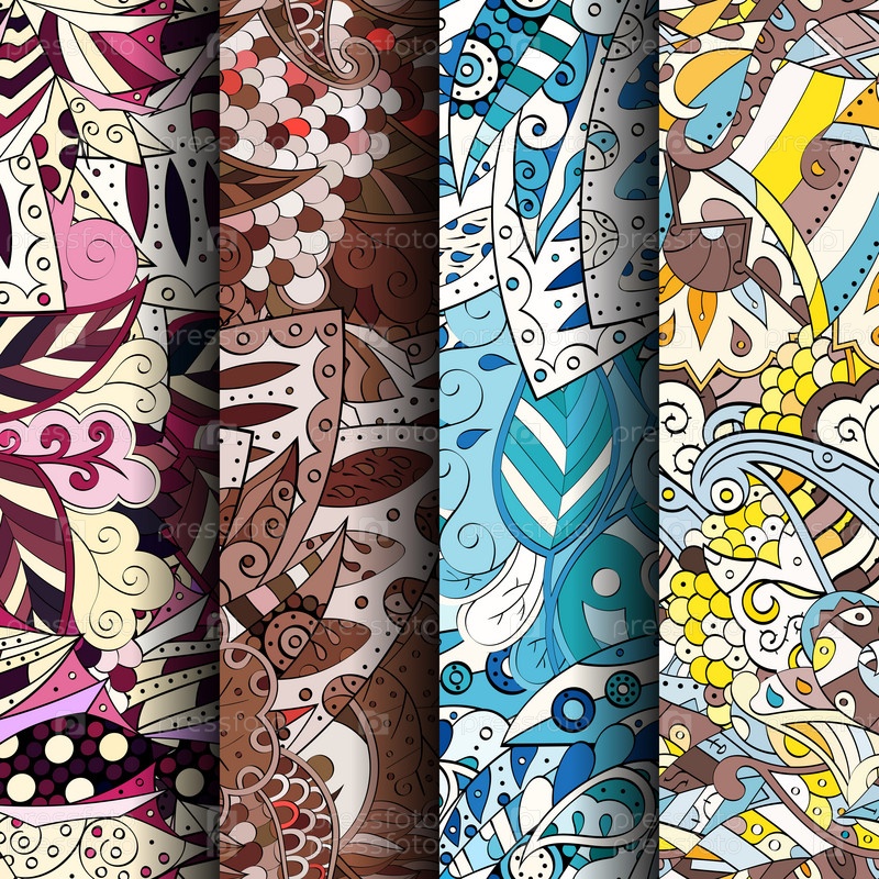 Набор ажурных красочных бесшовных узоров
