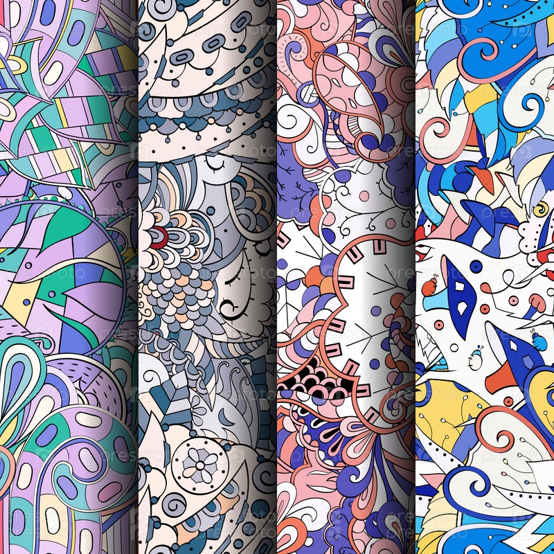 Набор ажурных красочных бесшовных узоров