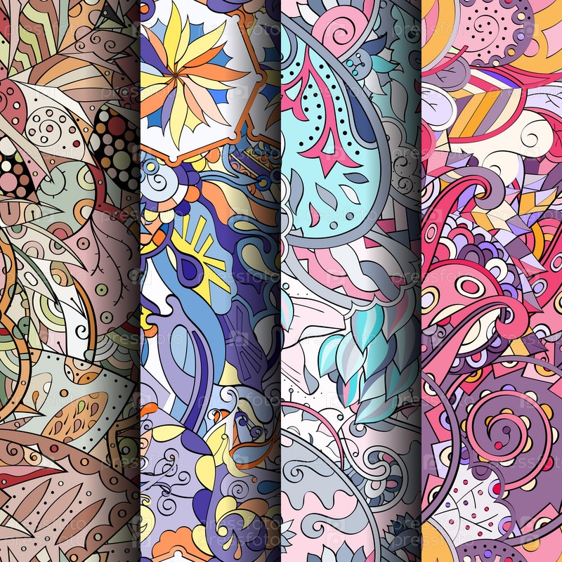 Набор ажурных красочных бесшовных узоров