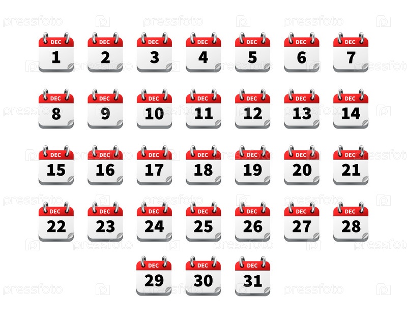 Набор ярких реалистичных иконок календарь на декабрь