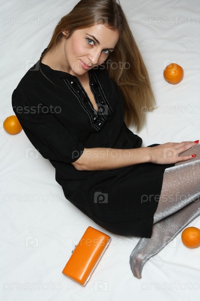 Портрет привлекательной девушки с апельсинами