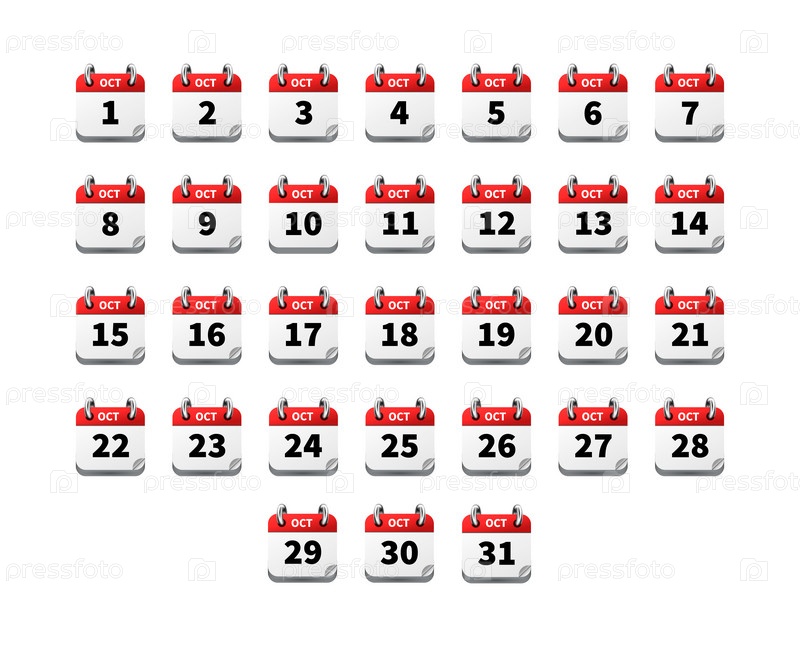 Набор ярких реалистичных иконок календарь на октябрь