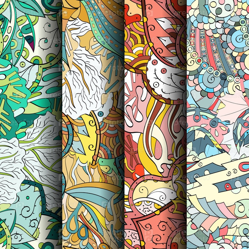Набор ажурных красочных бесшовных узоров