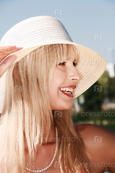 Молодая женщина с белой шляпе
