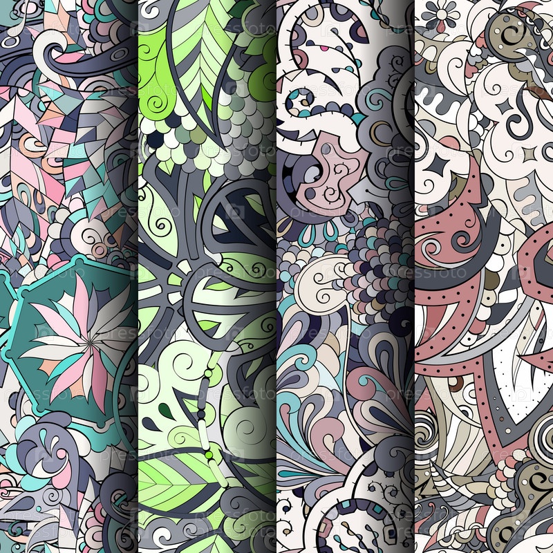 Набор ажурных красочных бесшовных узоров