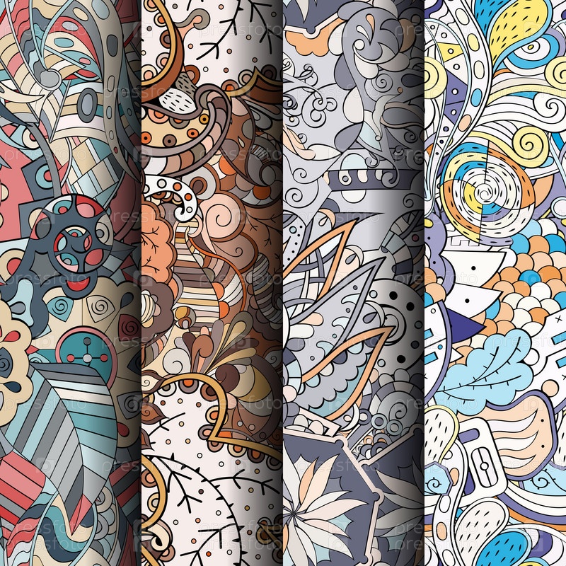 Набор ажурных красочных бесшовных узоров