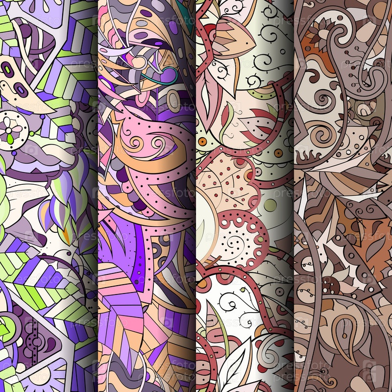 Набор ажурных красочных бесшовных узоров