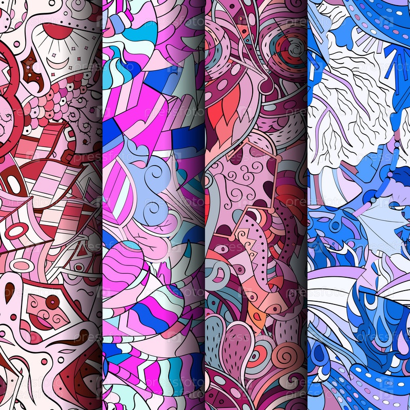 Набор ажурных красочных бесшовных узоров