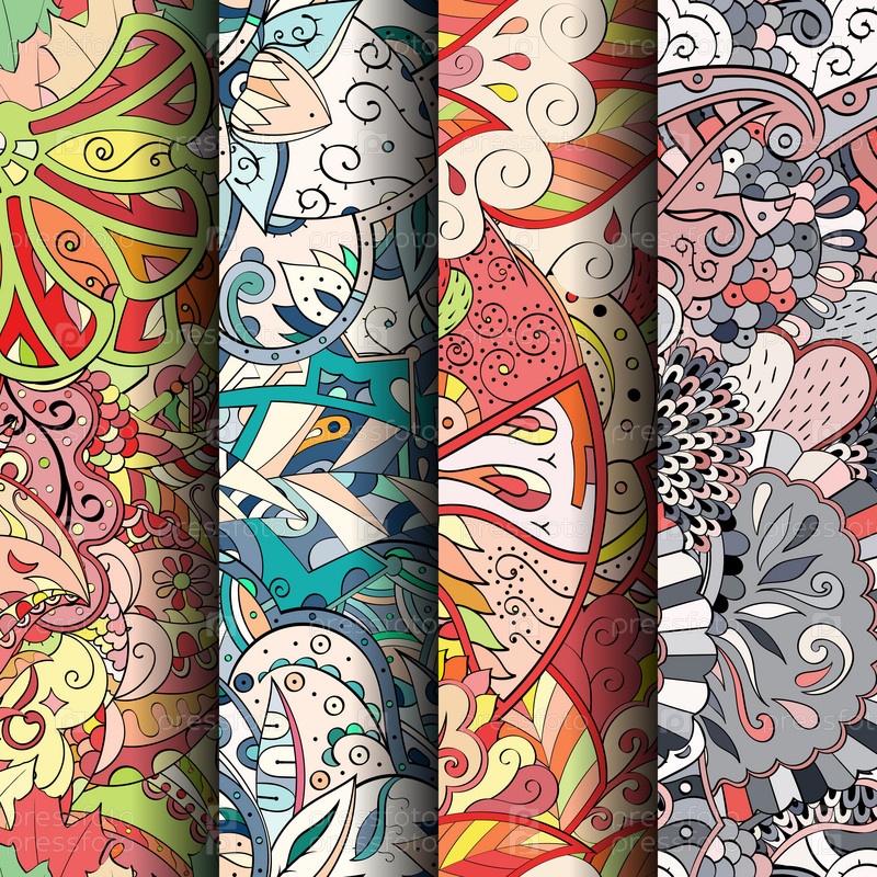 Набор ажурных красочных бесшовных узоров