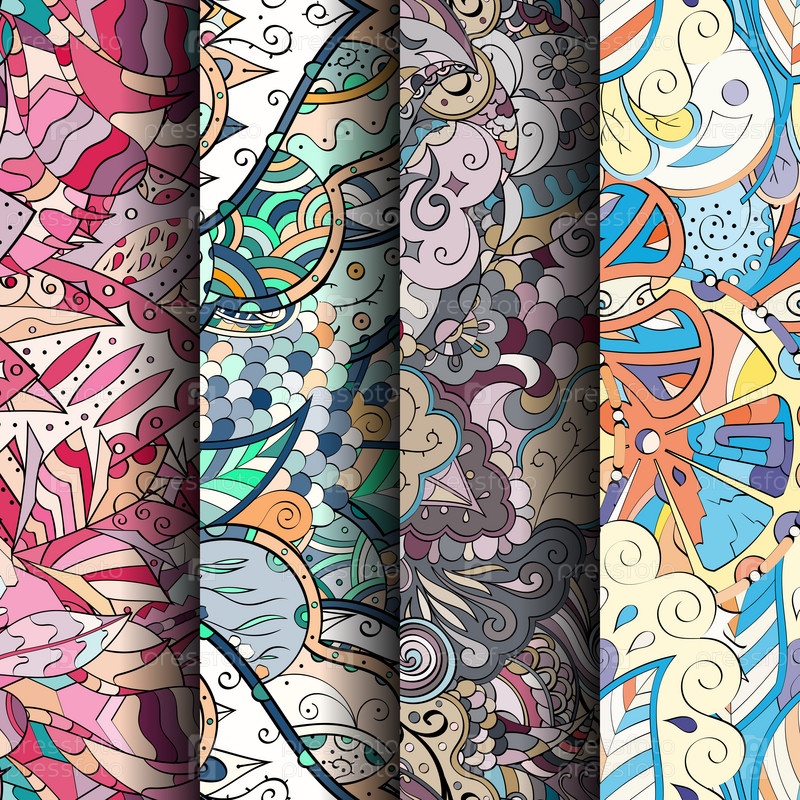 Набор ажурных красочных бесшовных узоров
