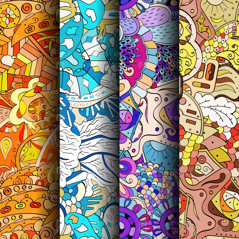 Набор ажурных красочных бесшовных узоров