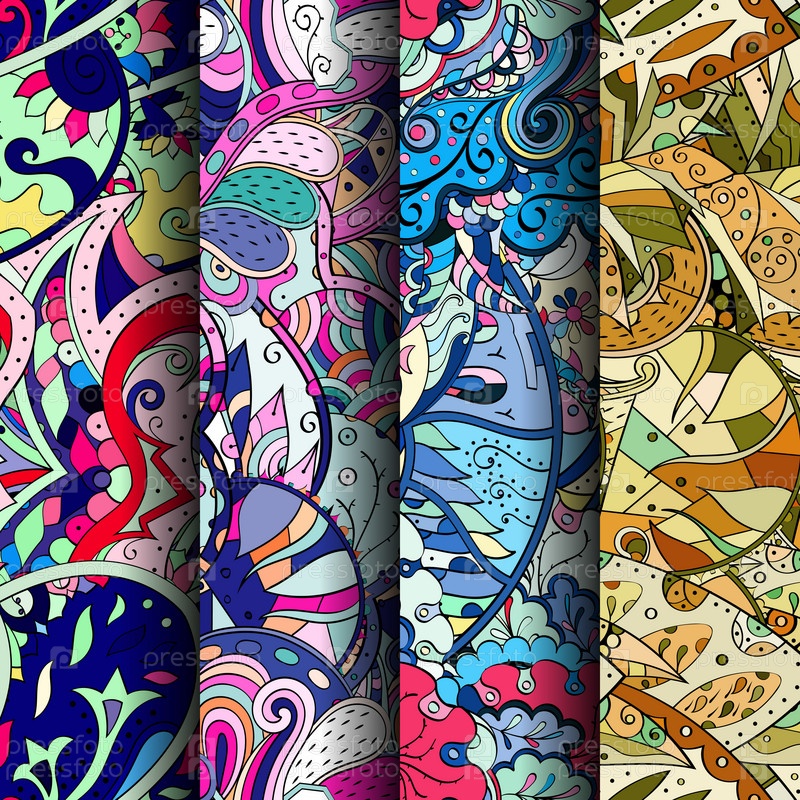 Набор ажурных красочных бесшовных узоров