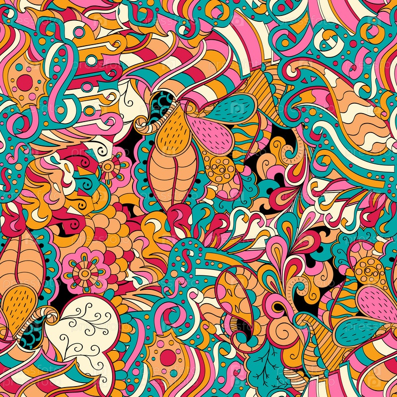 Красочный яркий узор с мелкими деталями