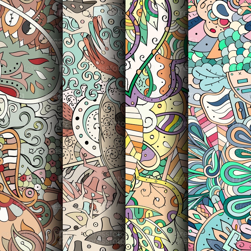Набор ажурных красочных бесшовных узоров