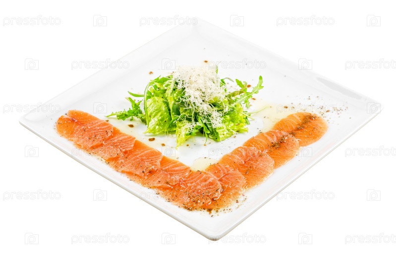 Карпаччо с зеленым салатом и сыром моцарелла