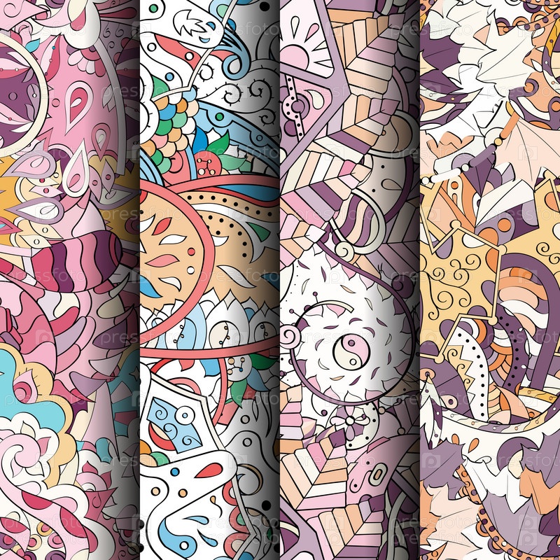 Набор ажурных красочных бесшовных узоров