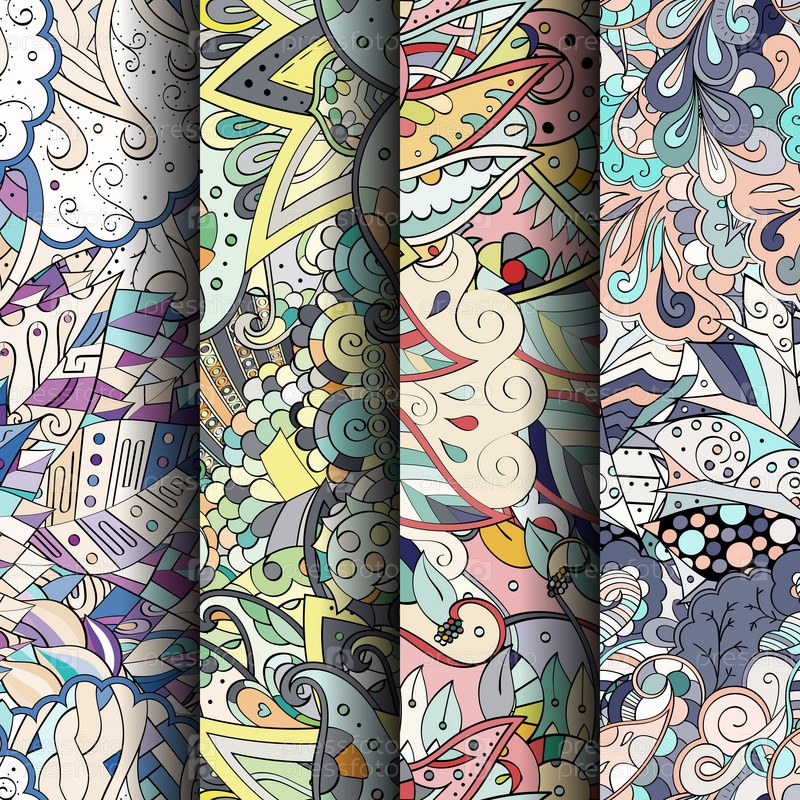Набор ажурных красочных бесшовных узоров